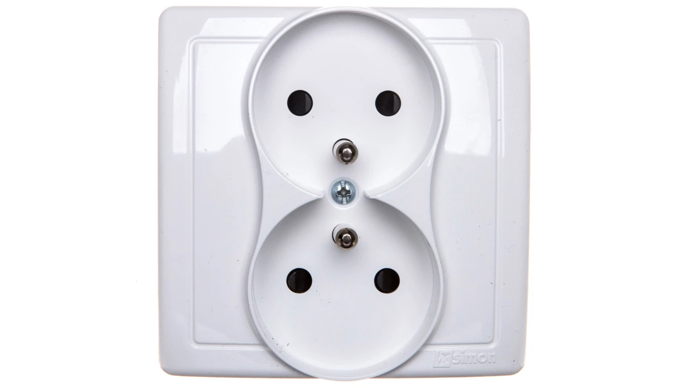 Simon Basic Gniazdo podwójne z/u 16A IP20 z przesłoną torów białe BMGZ2z/11