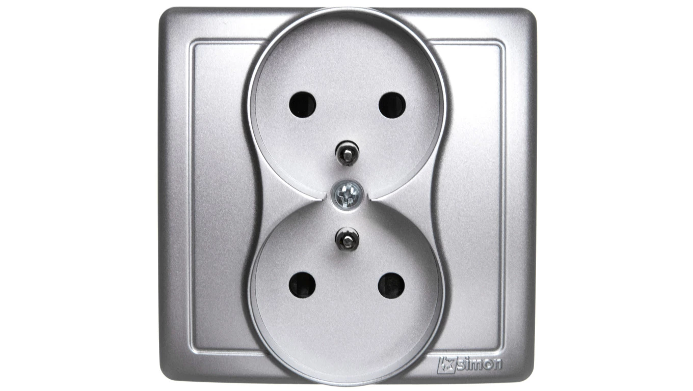 Simon Basic Gniazdo wtyczkowe podwójne z uziemieniem kompletne z przesłonami 16A 250V srebrny mat BMGZ2z/43