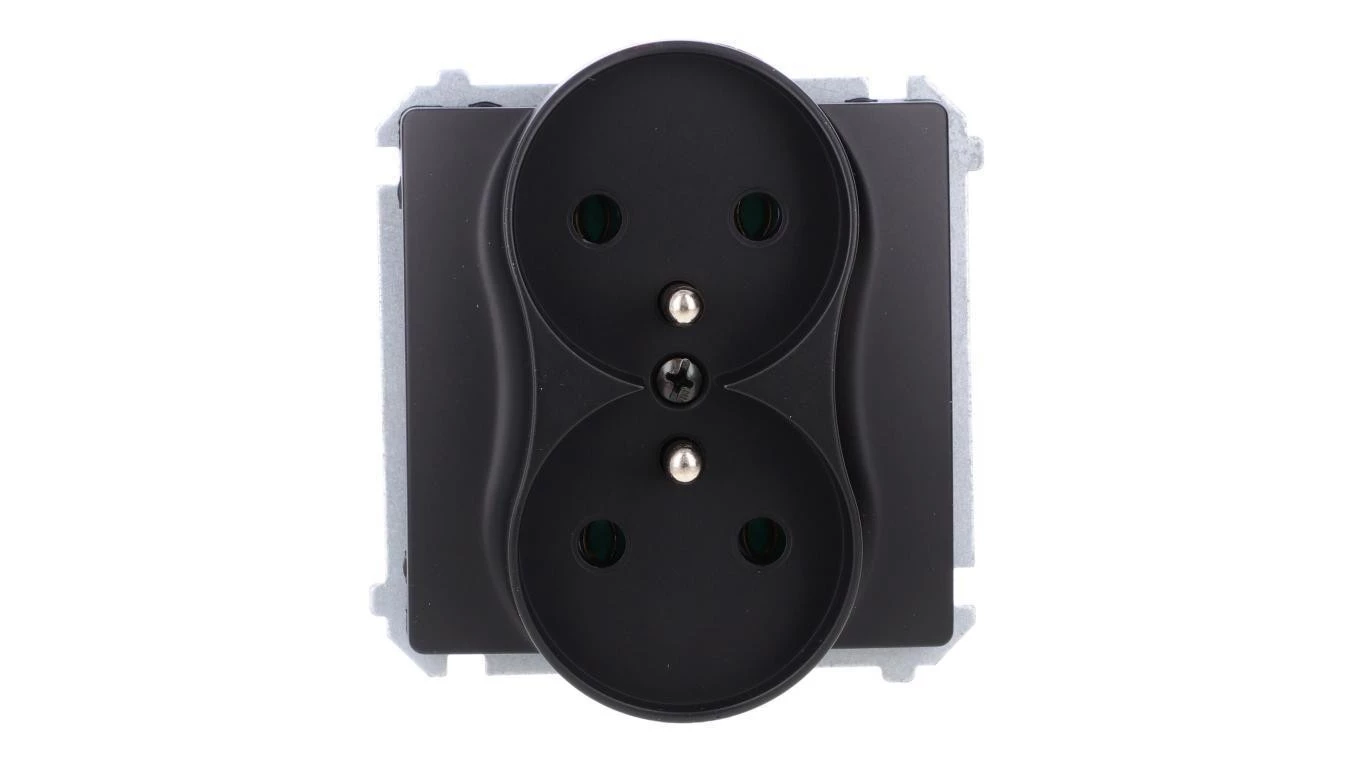 Simon Basic Gniazdo wtyczkowe podwójne z uziemieniem (moduł),16A, 250V, zaciski śrubowe czarny BMGZ2M.01/49