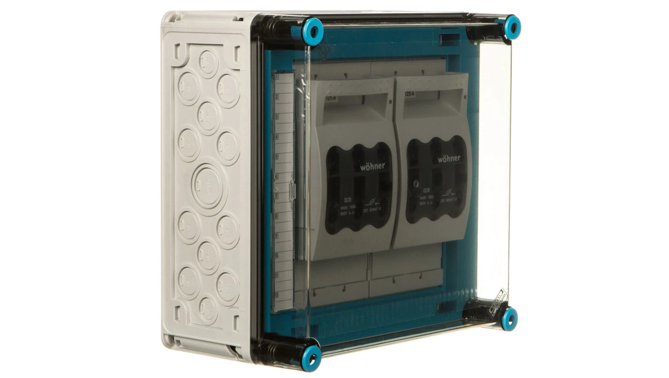 Skrzynka Mi z rozł. bezp. mocy, IP 65, wlk. 2, szyny zb. 250 A, 2xNH 00, 125 A, 3-bieg. +PE+N Mi 6265 20001284