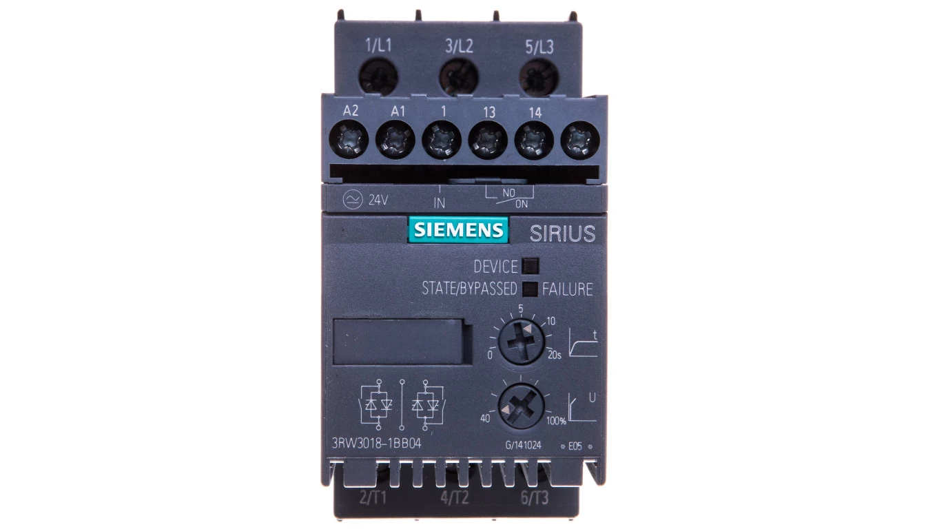 Softstart 3-fazowy 200-480VAC 17,6A 7,5kW/400V Uc=24V AC/DC S00 3RW3018-1BB04