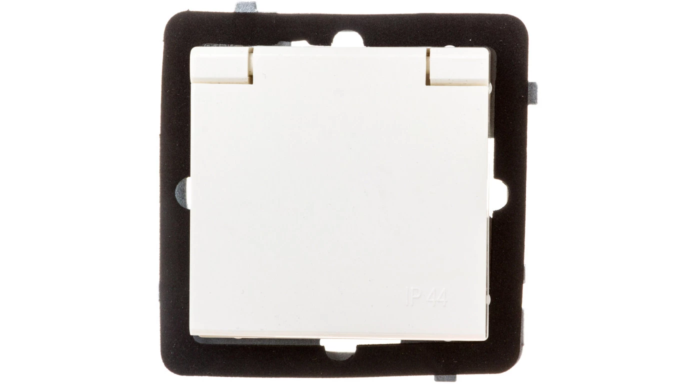 SONATA Gniazdo bryzgoszczelne z/u IP44 klapka ecru GPH-1RZ/m/27/w