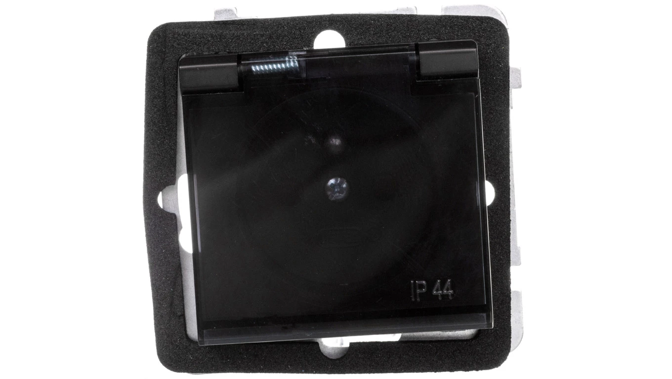 SONATA Gniazdo bryzgoszczelne z/u IP44 z przesłonami klapka przezroczysta czarny metalik GPH-1RZP/m/33/d