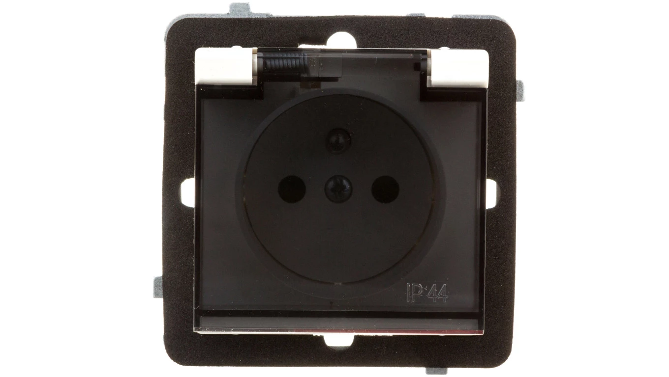 SONATA Gniazdo bryzgoszczelne z/u IP44 z przesłonami klapka przezroczysta ecru GPH-1RZP/m/27/d
