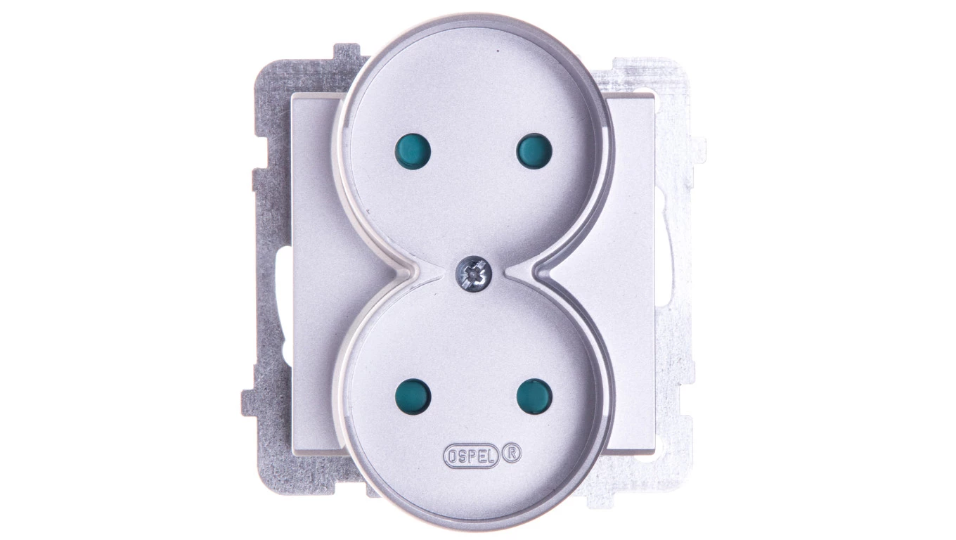 SONATA Gniazdo podwójne b/u z przesłonami srebro mat GP-2RRP/m/38