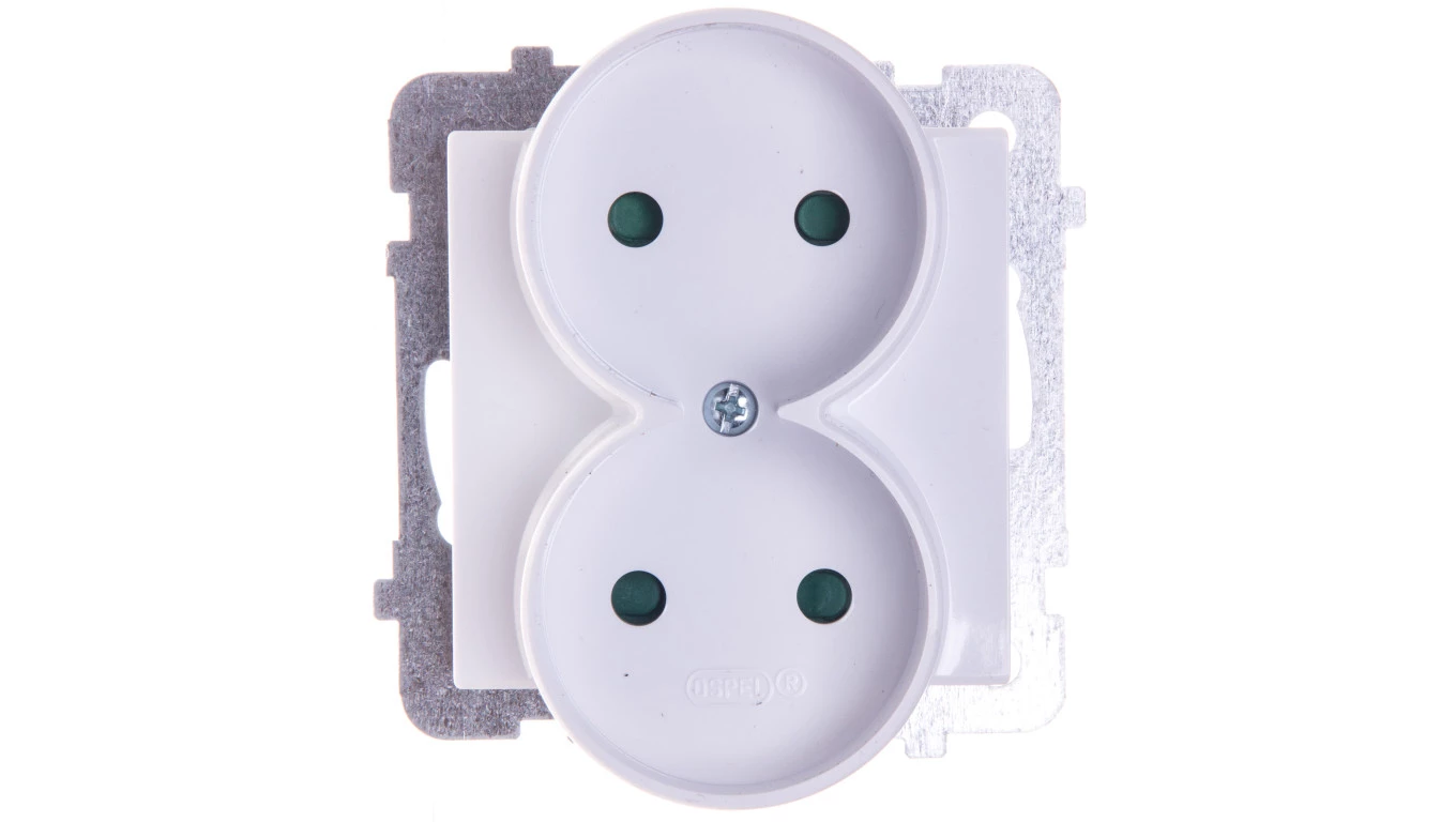 SONATA Gniazdo podwójne z przesłonami torów prądowych, moduł bez ramki biały mat GP-2RRP/m/75