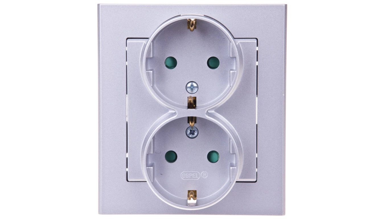 SONATA Gniazdo podwójne z/u Schuko z przesłonami srebro mat GP-2RSP/38