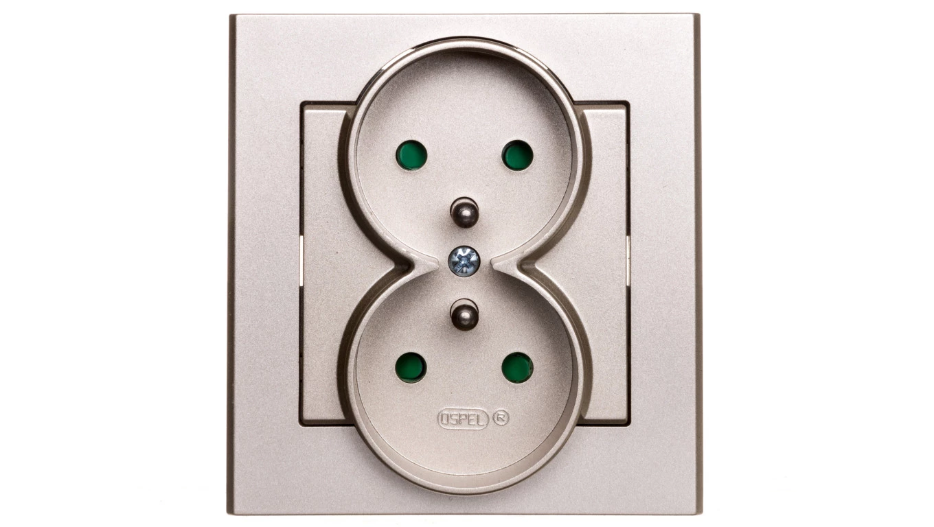 SONATA Gniazdo podwójne z/u z przesłonami szampański złoty GP-2RZP/39