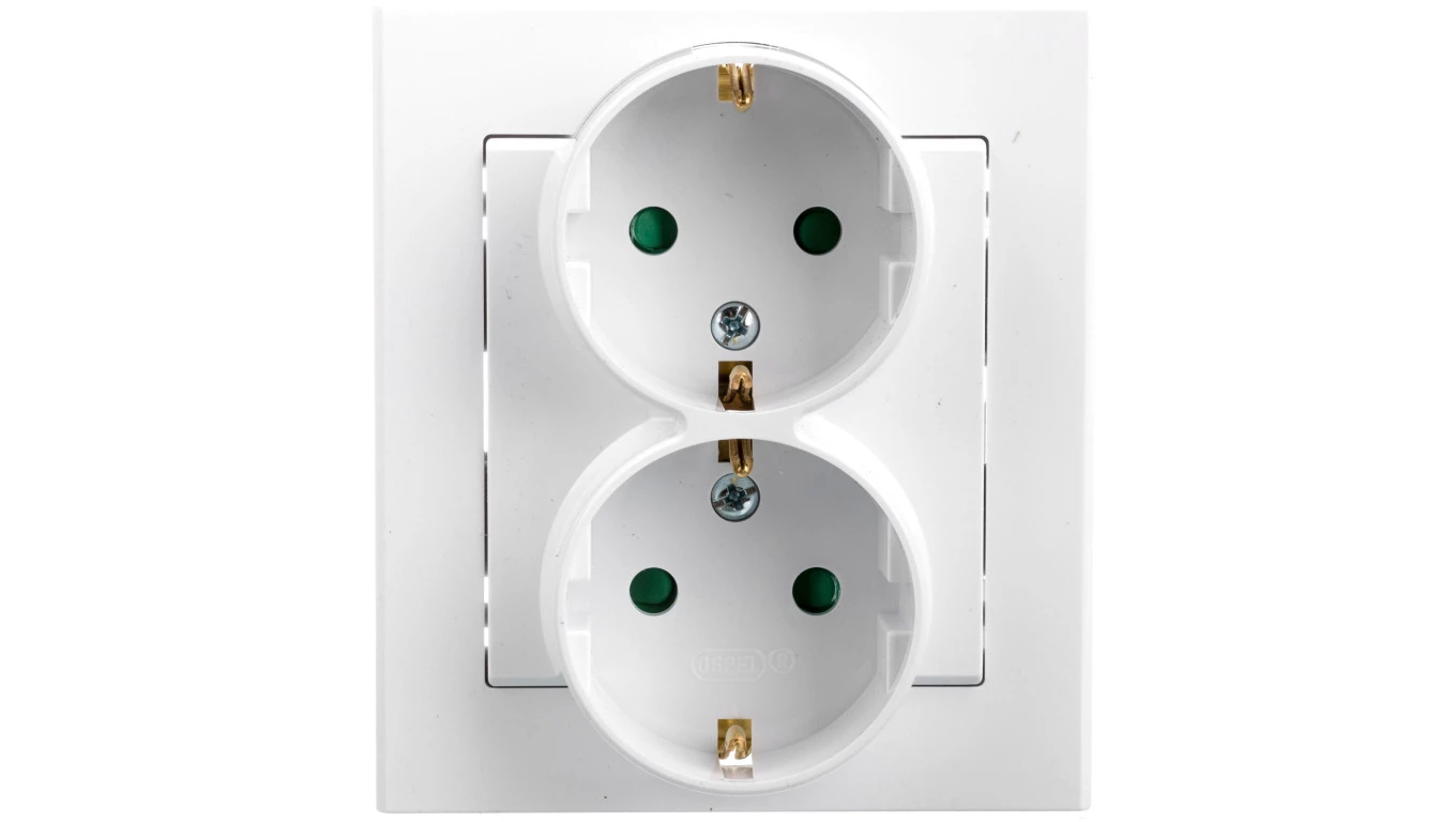 SONATA Gniazdo podwójne z uziemieniem schuko z przesłonami torów prądowych, kompletne z ramką biały mat GP-2RSP/75