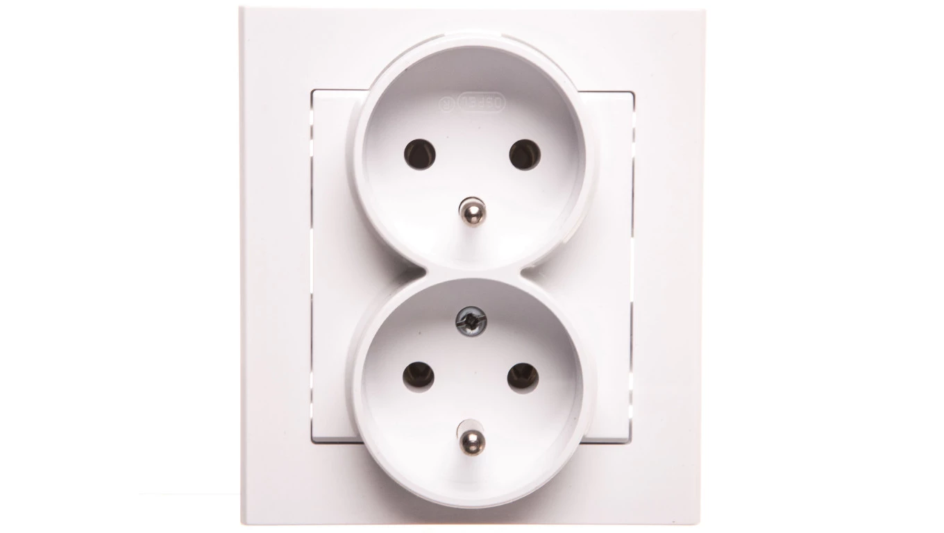 SONATA Gniazdo podwójne z uziemieniem z funkcją niezamienności faz, kompletne z ramką biały mat GP-2RC/75