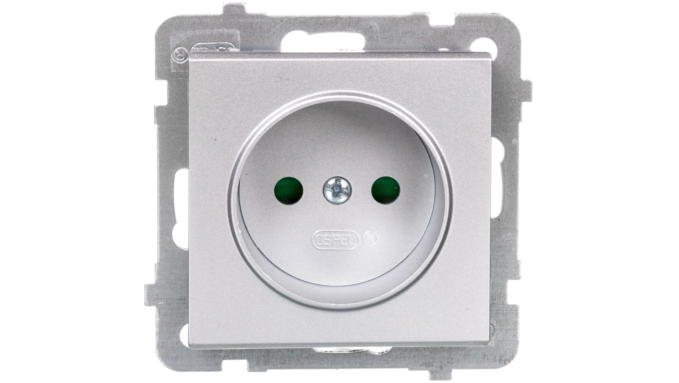 SONATA Gniazdo pojedyncze b/u z przesłonami srebro mat GP-1RP/m/38