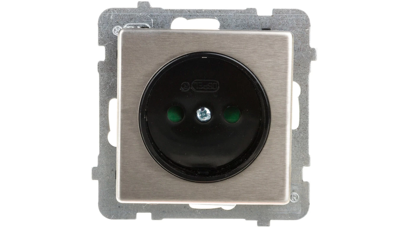 SONATA Gniazdo pojedyncze b/u z przesłonami stal inox GP-1RMP/m/37