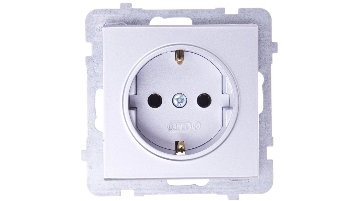 SONATA Gniazdo pojedyncze z/u Schuko srebro mat GP-1RS/m/38