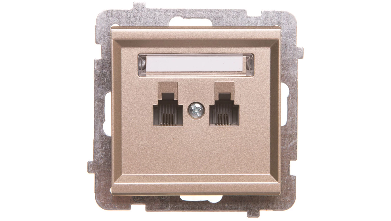 SONATA Gniazdo telefoniczne podwójne RJ11 niezależne szampański złoty GPT-2RN/m/39