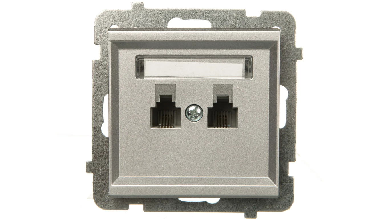 SONATA Gniazdo telefoniczne podwójne RJ11 równoległe srebro mat GPT-2RR/m/38