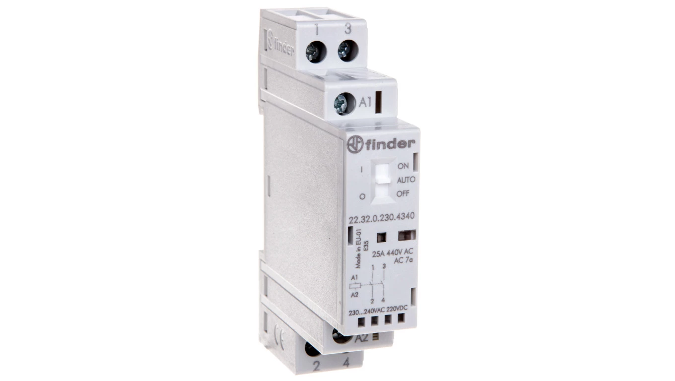 Stycznik modułowy 2Z 25A 230V AC/DC funkcja Auto-On-Off, wskaźnik zadziałaniua + LED 17,5mm 22.32.0.230.4340
