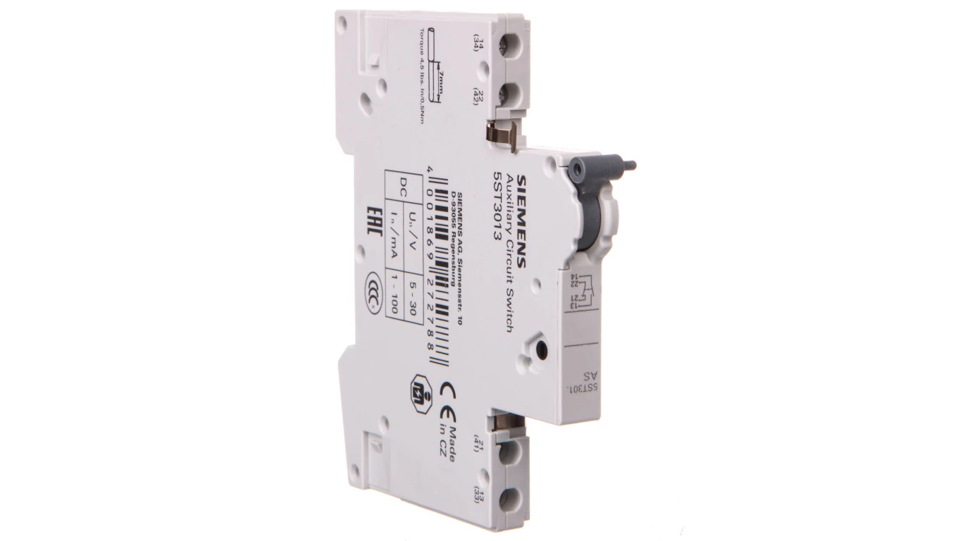 Styki pomocnicze 1Z+1R przycisk TEST dla PLC montaż boczny 5ST3013-2