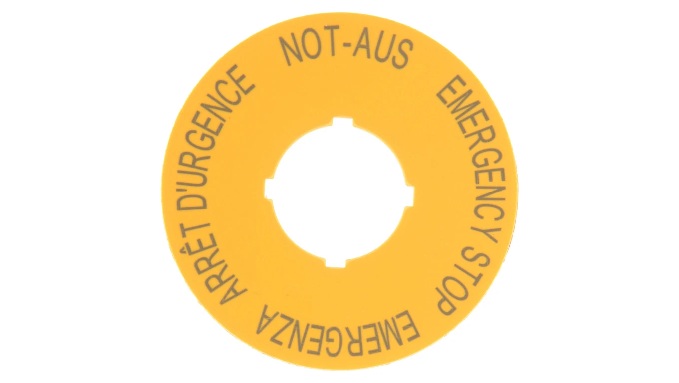 Tabliczka opisowa żółta okrągła fi90 EMERGENCY STOP M22-XAK1 216465