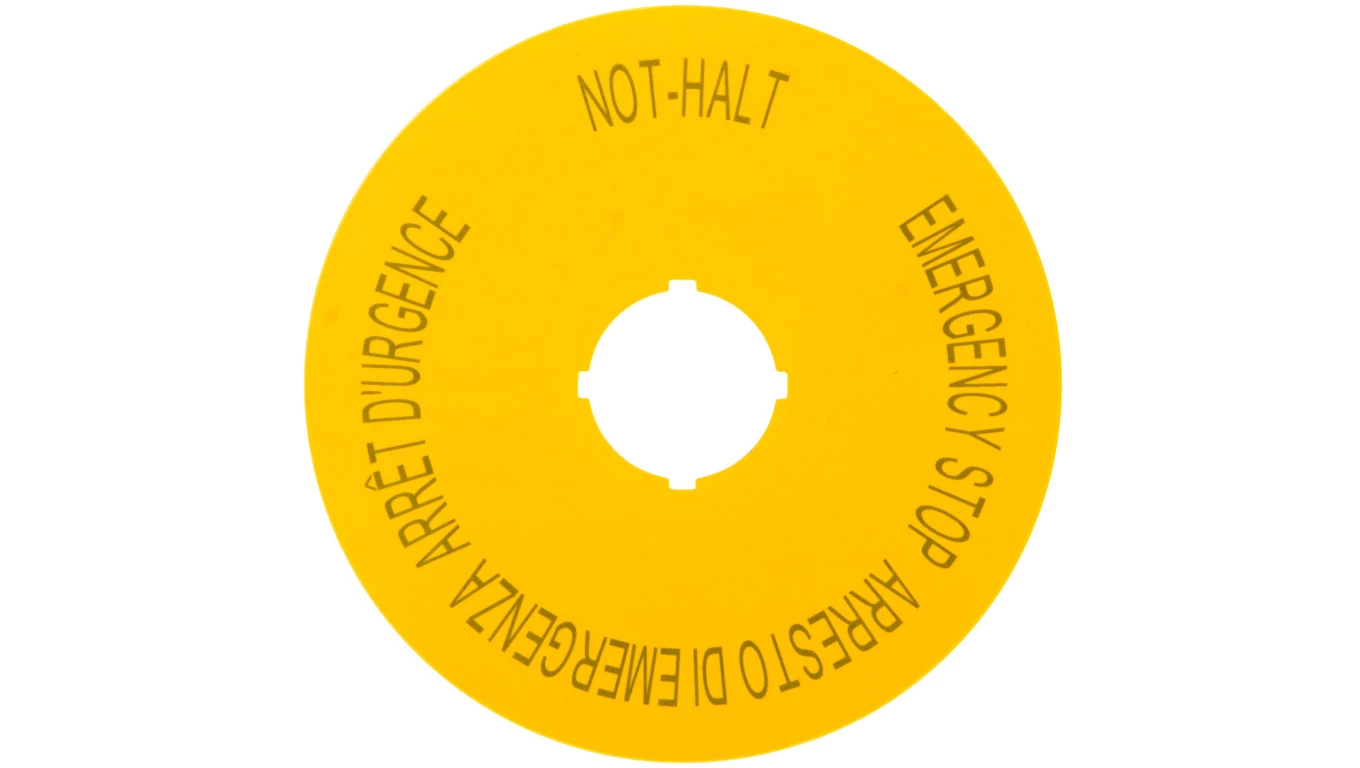 Tabliczka opisowa żółta okrągła fi90 EMERGENCY STOP (DE, GB, NL, F) M22-XAK3 216467