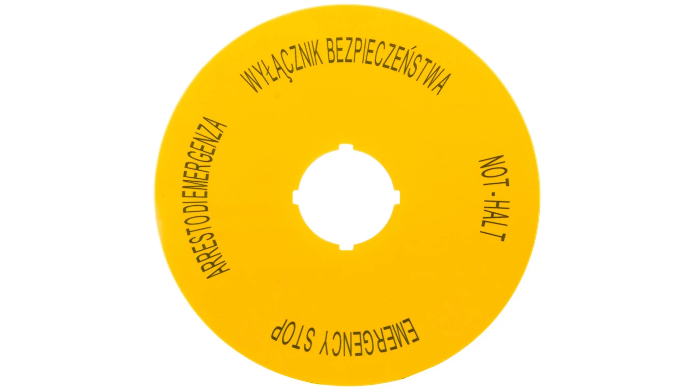Tabliczka opisowa żółta okrągła WYŁĄCZNIK BEZPIECZEŃSTWA (4 języki) fi90, M22-XAK15167640