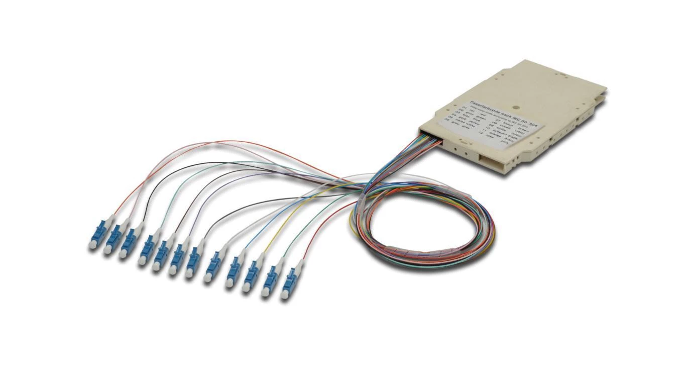 Tacka spawów światłowodowych z 12 kolorowymi pigtailami LC (UPC), MM OM4 50/125, 2m, LSZH A-96533-02-UPC-4