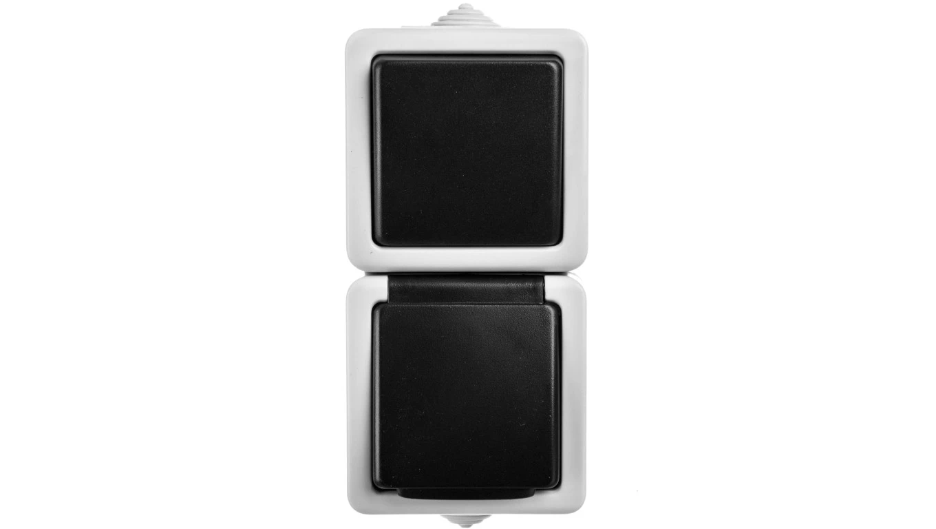 TEKNO Łącznik jednobiegunowy + Gniazdo z przesłoną styków pionowy 10AX/16A 250V szare IP54 25361