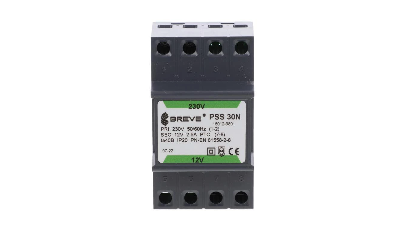 Transformator 1-fazowy modułowy bezpieczeństwa PSS 30N 230/ 12V 2,5A, na szynę DIN, IP20, Ta 40, 16012-9891