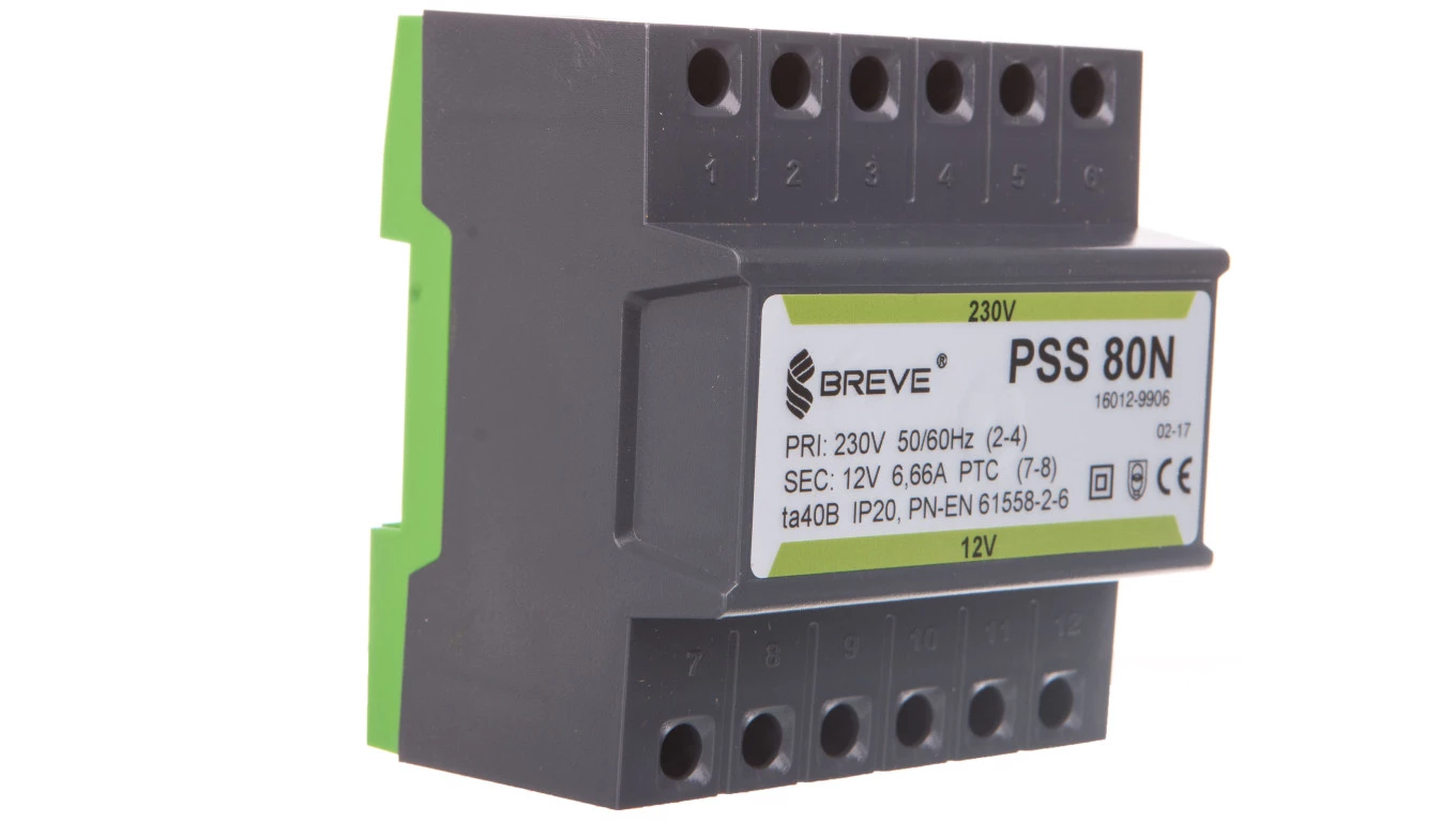 Transformator 1-fazowy modułowy bezpieczeństwa PSS 80N 230/ 12V 6,6A, na szynę DIN, IP20, Ta 40, 16012-9906