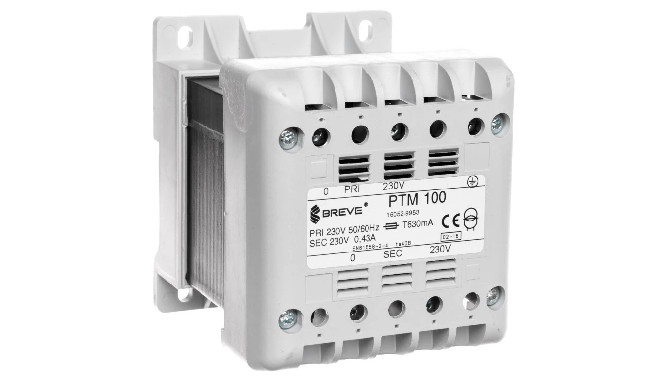 Transformator 1-fazowy separacyjny PTM 100 230/230V 0,43A, na szynę DIN, IP21, Ta 40, 16052-9953