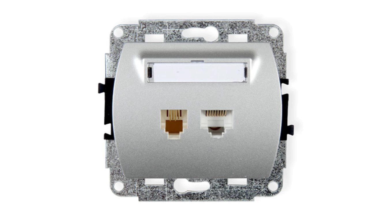 TREND Gniazda telefoniczne pojedyncze 1xRJ11 + komputerowego pojedynczego 1xRJ45, kat. 5e, 8-stykowy srebrny 5GTK