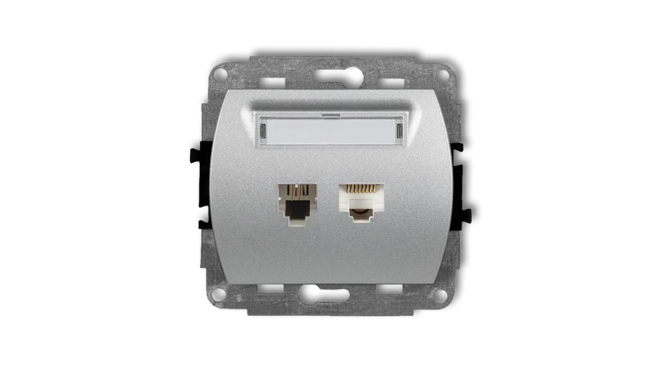 TREND Gniazda telefoniczne pojedyncze 1xRJ11 + komputerowego pojedynczego 1xRJ45, kat. 5e, 8-stykowy srebrny metalik 7GTK