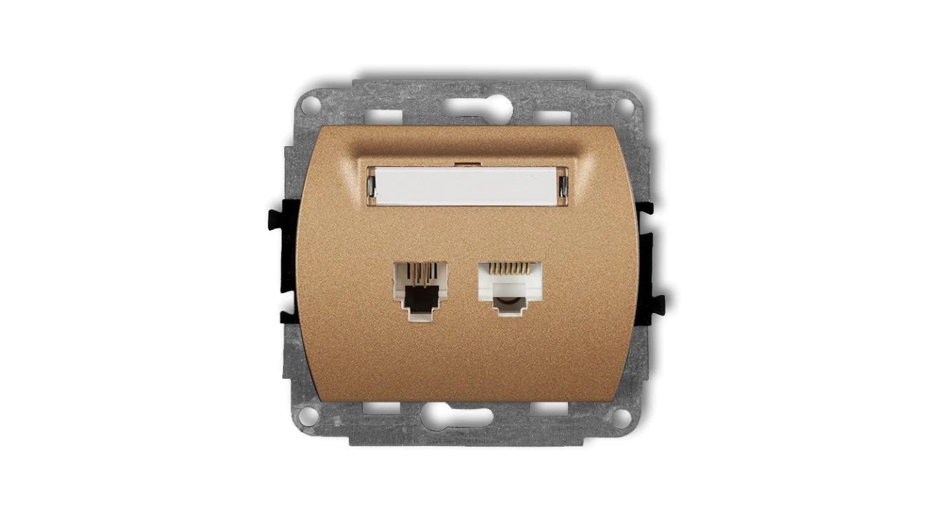 TREND Gniazda telefoniczne pojedyncze 1xRJ11 + komputerowego pojedynczego 1xRJ45, kat. 5e, 8-stykowy złoty metalik 8GTK