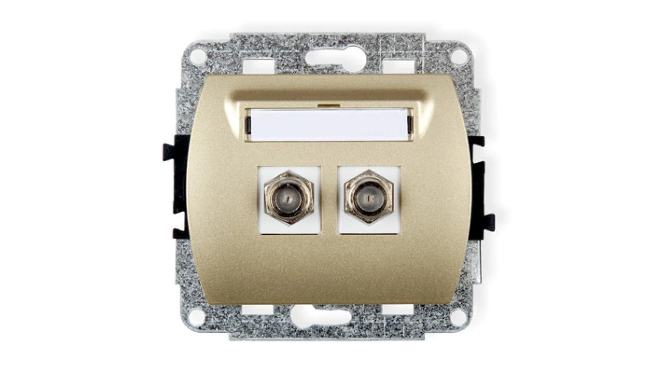 SONATA Gniazdo antenowe podwójne typu F szampański złoty GPA-2RF/m/39