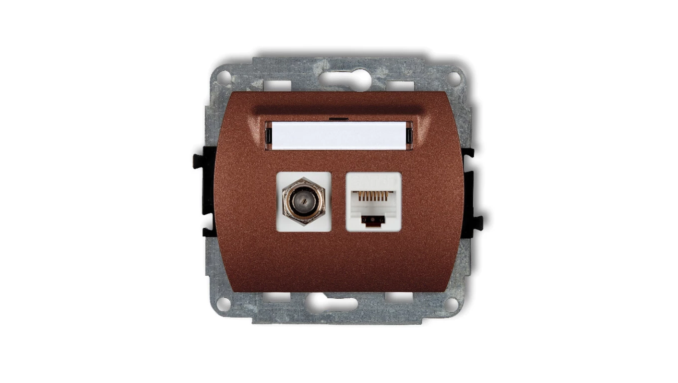TREND Gniazdo antenowe pojedyncze typu F (SAT) + gniazda komputerowe pojedyncze 1xRJ45 kat. 5e 8-stykowy brĄzowy metalik 9GFK-1