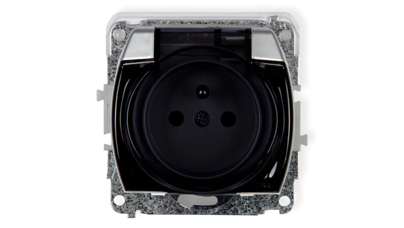 TREND Gniazdo bryzgoszczelne z/u (klapka dymna) srebrny 5GPB-1zdp