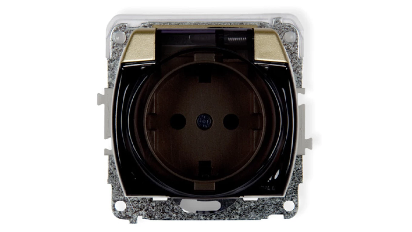 TREND Gniazdo bryzgoszczelne z/u SCHUKO (klapka dymna) złoty 6GPB-1sdp