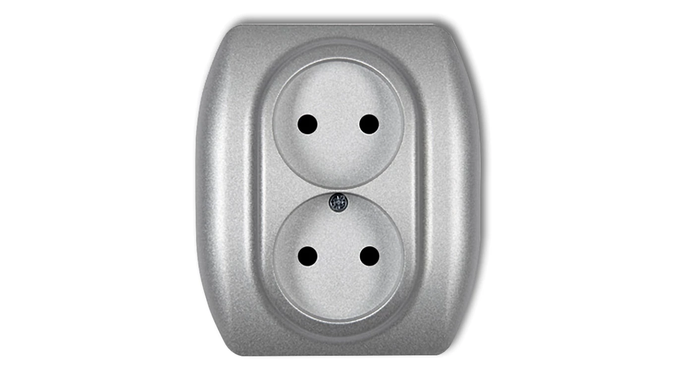 KARO Gniazdo podwójne b/u srebrny perłowy GP-2SR/m/43