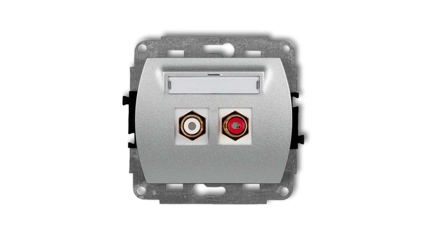 TREND Gniazdo podwójne RCA (typu cinch - biały i czerwony, pozłacany) srebrny metalik 7GRCA-2