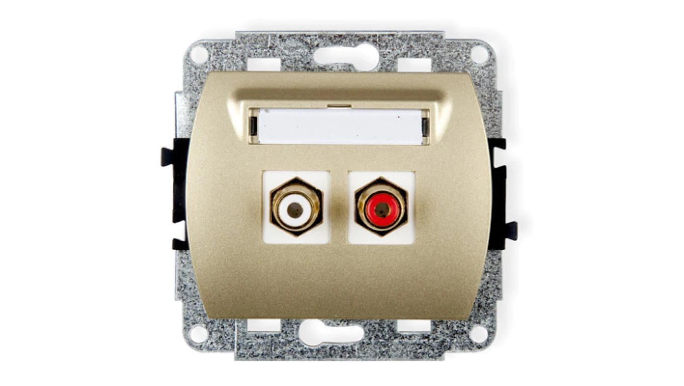 TREND Gniazdo podwójne RCA (typu cinch - biały i czerwony, pozłacany) złoty 6GRCA-2