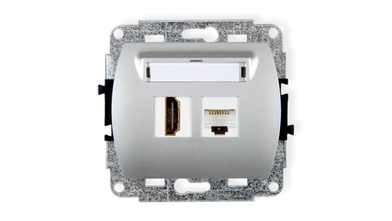 TREND Gniazdo pojedyncze HDMI + Gniazdo komputerowe pojedyncze 1xRJ45, kat. 5e, 8-stykowy srebrny 5GHK