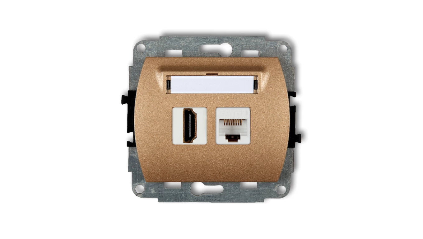 TREND Gniazdo pojedyncze HDMI + Gniazdo komputerowe pojedyncze 1xRJ45, kat. 5e, 8-stykowy złoty metalik 8GHK