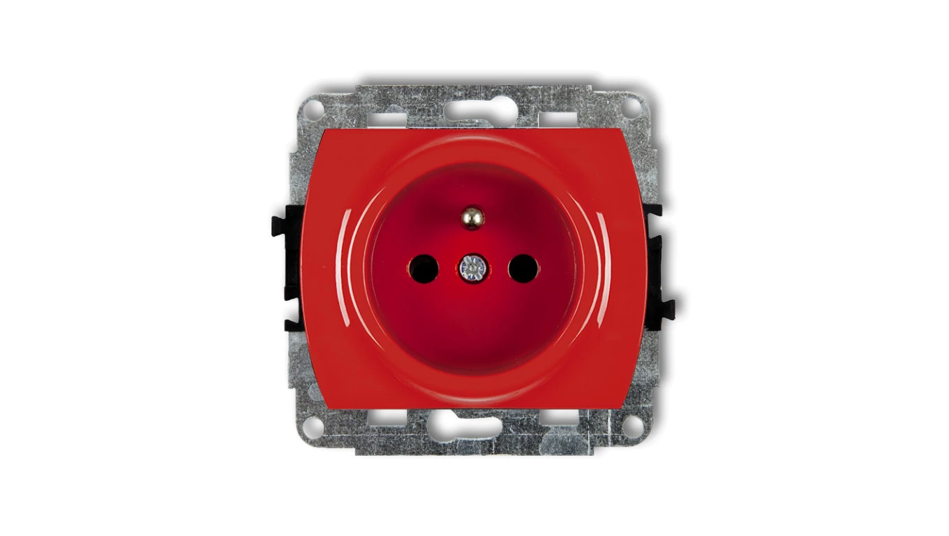 TREND Gniazdo pojedyncze z/u DATA bez klucza z przesłonami czerwony GBK