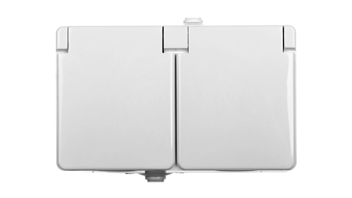 TROL Gniazdo hermetyczne podwójne z/u IP44 klapka biała 100436