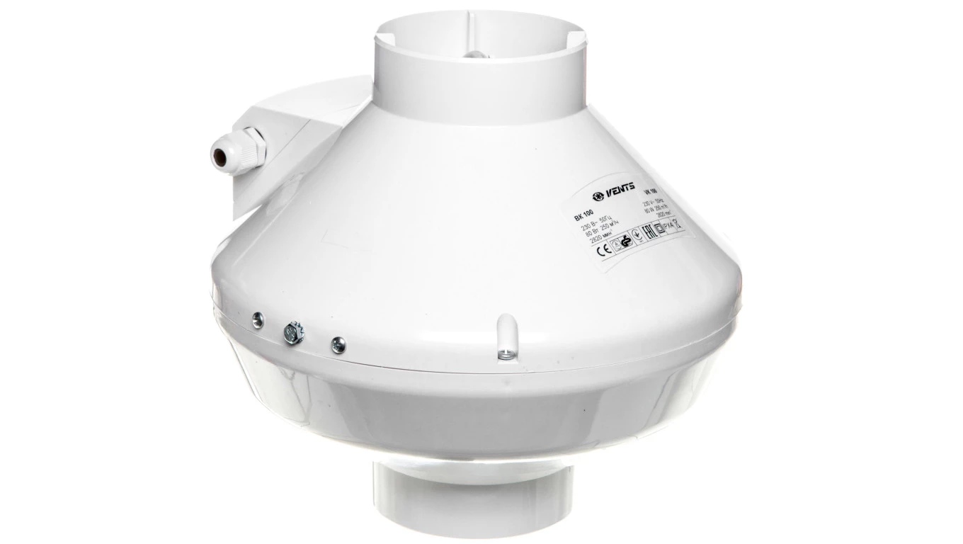 Wentylator kanałowy odśrodkowy fi 100 230V 80W 205m3/h 46dB biały VK100