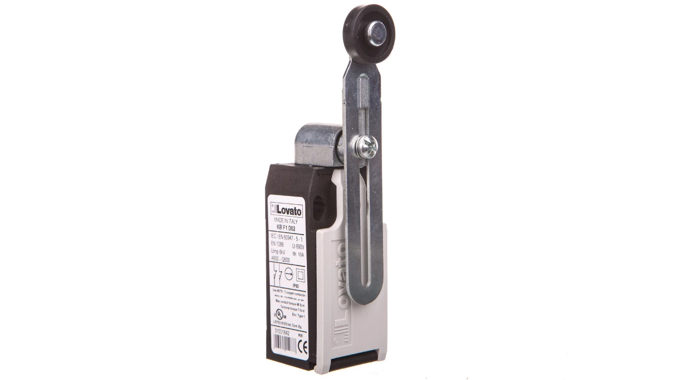 Wyłącznik krańcowy dwukierunkowy, z dźwignią regulowaną z rolką z tworzywa, obudowa z tworzywa, 2R zestyki niezależne KBF1D02