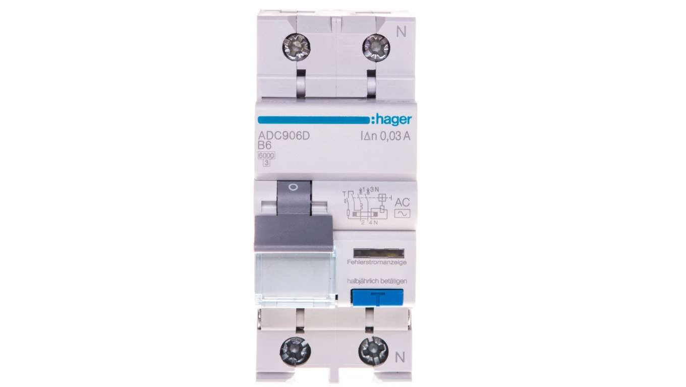 Wyłącznik różnicowo-nadprądowy RCBO 2P B6A 0,03A Typ AC ADC906D