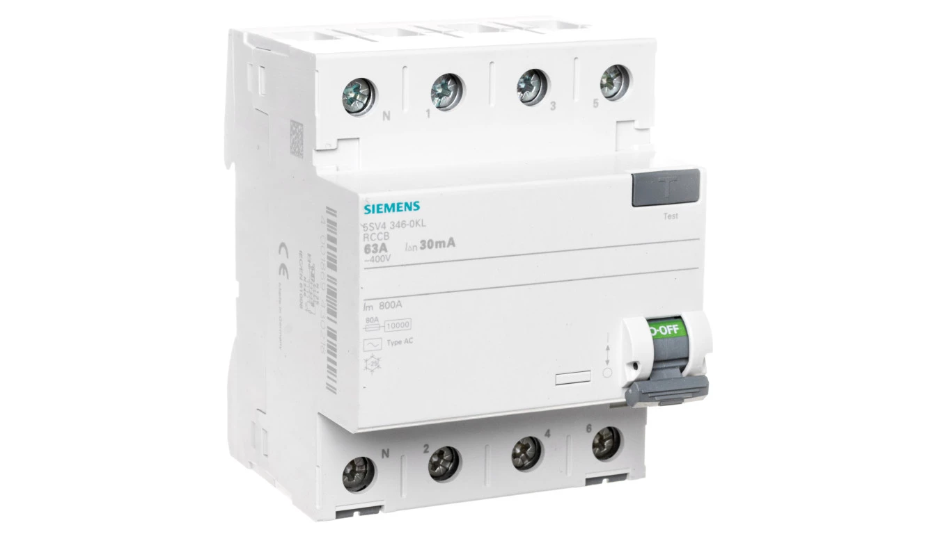 Wyłącznik różnicowoprądowy 4P 63A 0,03A typ AC biegun N-lewe 30mA 400V SENTRON 5SV4346-0KL