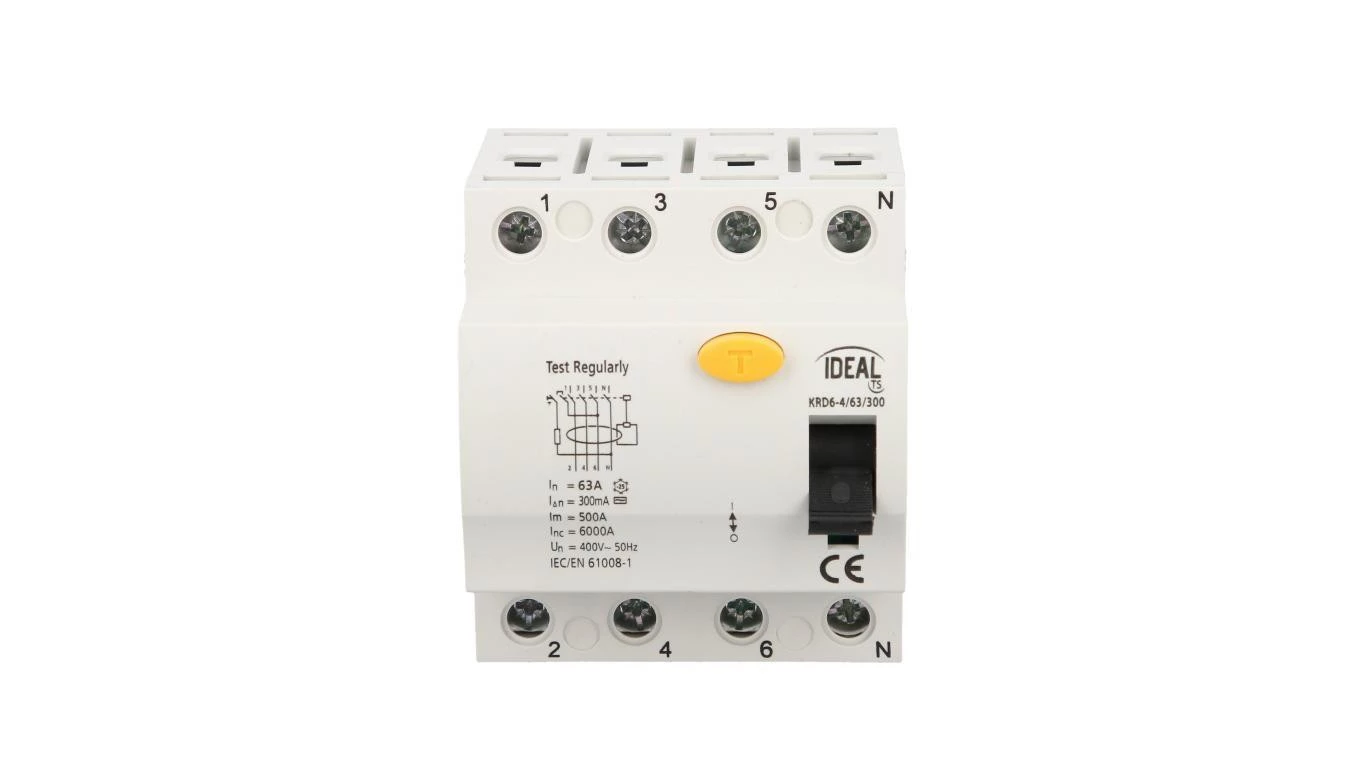 Wyłącznik różnicowoprądowy 4P 63A 0,3A typ AC KRD6-4/63/300 VDE 23201
