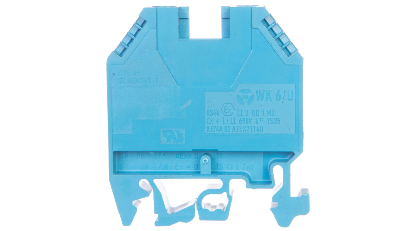 Zacisk szeregowy instalacyjny neutralny 6mm2 poliamidowy niebieski KXA06NH