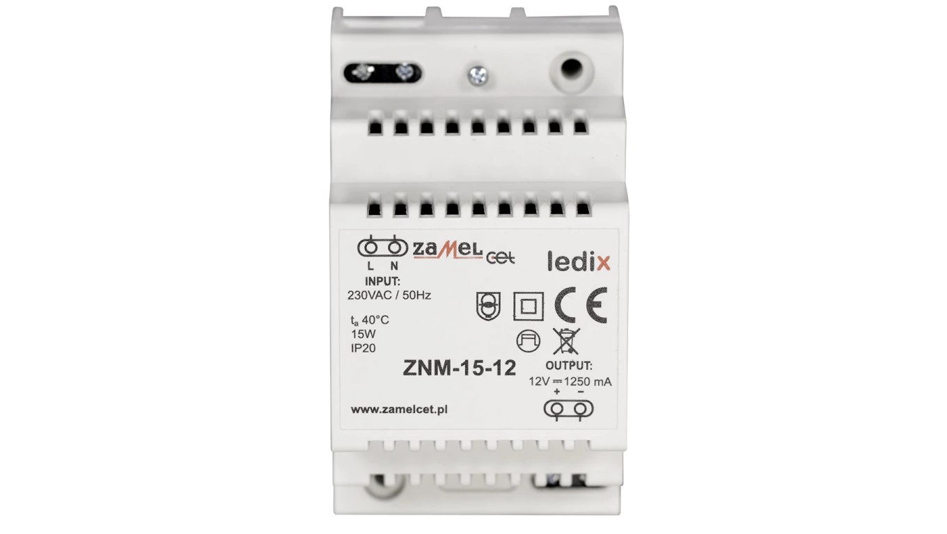 Zasilacz LED modułowy 12V DC 15W ZNM-15-12 LDX10000020